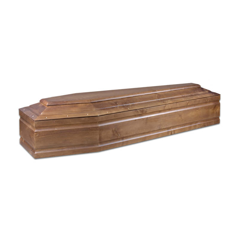 Il modello 240 è una bara realizzata in legno di abete naturale, dal carattere sobrio ed essenziale. Le sue linee pulite e la finitura chiara valorizzano la semplicità e la purezza del materiale. Il legno di abete, leggero ma resistente, è accuratamente selezionato per garantire solidità e uniformità estetica. La superficie liscia esalta le venature naturali, donando alla cassa un aspetto caldo e armonioso. Un design discreto e rispettoso, adatto a chi cerca dignità e semplicità in un ultimo saluto. Ideale per cerimonie dal tono raccolto e tradizionale.